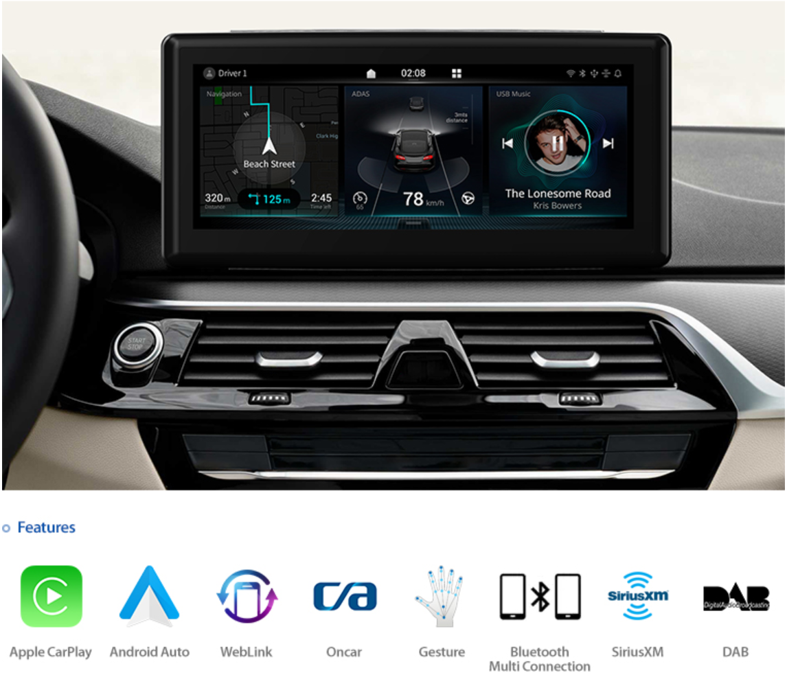 당사의 AVNC 시스템은 스마트폰과 연결하여 Audio, Video, 3D 및 AR Navigation 과 2D/3D 제스처 인식 기능까지 복합 기능을 구현하는 디스플레이 시스템입니다.