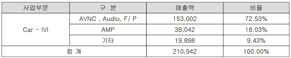 | 주요 품목 | 자동차용 멀티미디어 제품 |