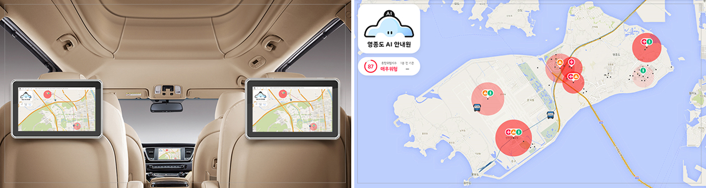 자율주행의 사용 목적에 따른 서비스를 탑승자 모두에게 표현할 수 있는 IVI와 RSE를 통해 구현하는 시스템입니다. 당사의 AI 안내원 기술과 융합하여 탑승자와 원활한 커뮤니케이션을 할 수 있습니다. AI 안내원이란 자율주행차량과 탑승객이 원활한 커뮤니케이션을 할 수 있는 AI 에이전트 기술입니다.