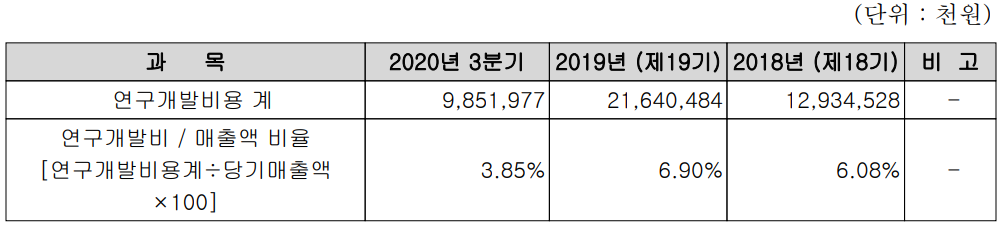 당사는 연구 개발 비용으로 매년 매출액 대비 상당 부분의 비용을 투자하고 있으며, 주요 고객사인 현대자동차와 기아자동차에 PIO 방식의 공급이 이루어지고, 국내뿐만 아니라 해외 여러 국가별 환경에 맞는 IVI 시스템을 공급하기 때문에 다양한 환경과 요구사항에 따른 개발이 이루어지고 있습니다.