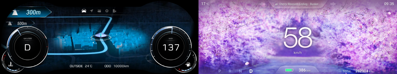 Tia-Core는 당사가 독자적으로 개발한 디지털 그래픽 구현 기술로 차량 내 디지털 표시장치 같은 임베디드 시스템 환경에 최적화된 3D 그래픽 환경을 구현합니다.