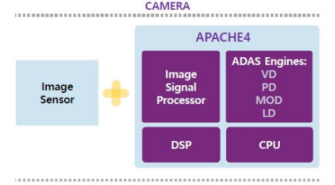 당사는 지난 2019년 출시된 APACHE 4는 ADAS 통합 SoC Chip으로써, ISP, ADAS 알고리즘 및 CPU가 집적된 제품입니다.