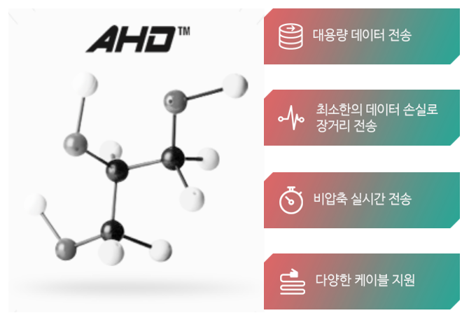 당사의 이미지 전송 솔루션에는 AHD2.0, 실시간 비압축 방식, 장거리 전송 및 시그널 필터링 기술 등이 집약되어 있습니다.