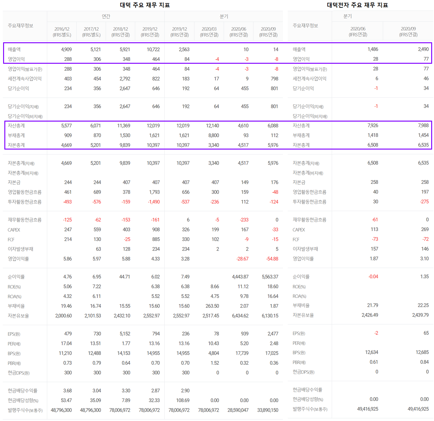 | 2020 | 지주회사(대덕), 사업회사(대덕전자) 분할 |