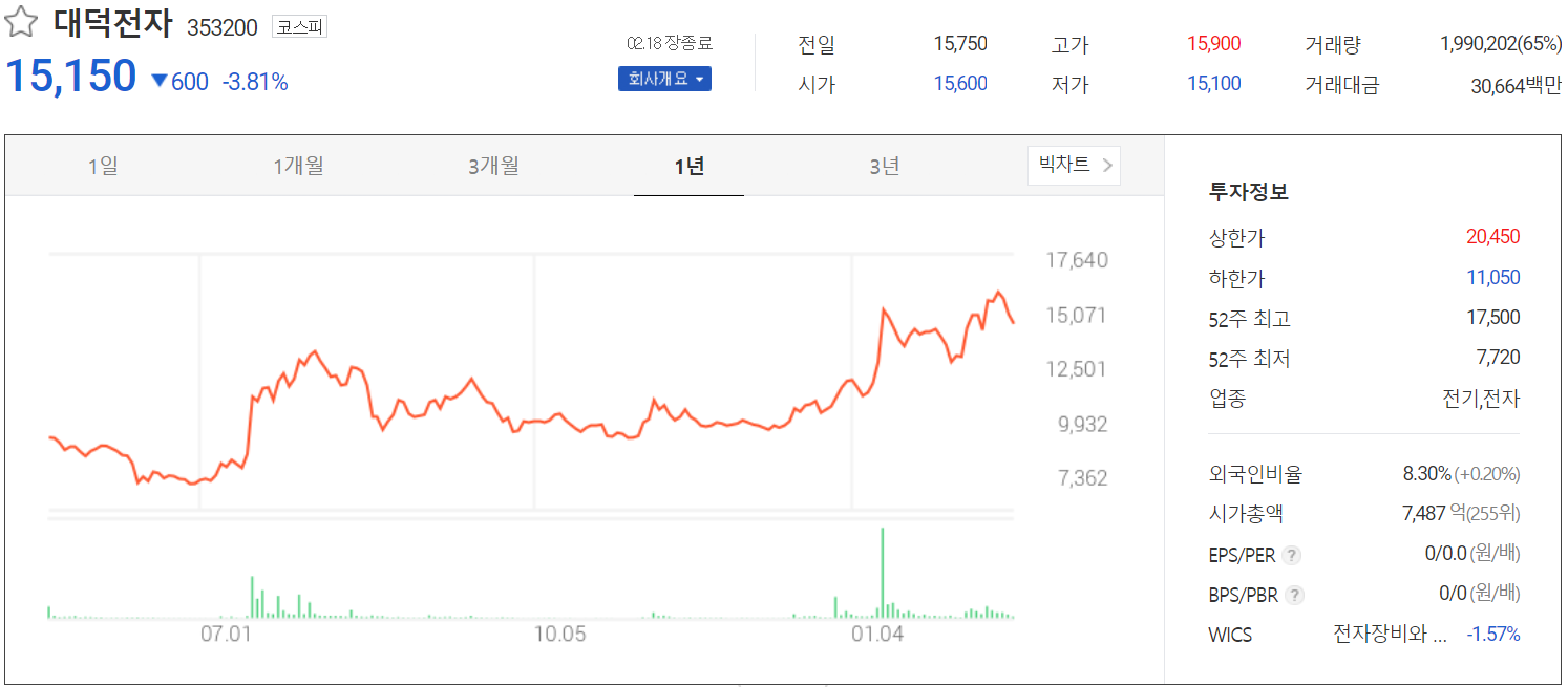 | 회 사 명 | 대덕전자(주) |