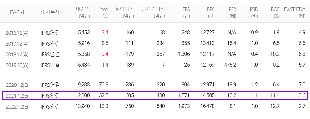 2021년은 연매출 1조 2,300억 원으로 2020년 대비 32.5% 증가할 것으로 내다봤고 특히 영업이익이 605억 원으로 111.5% 증가할 것으로 추정했습니다.