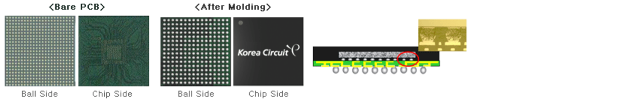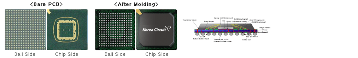 PBGA는 주로 Micro processor, Controller, Graphics 등에 사용됩니다.