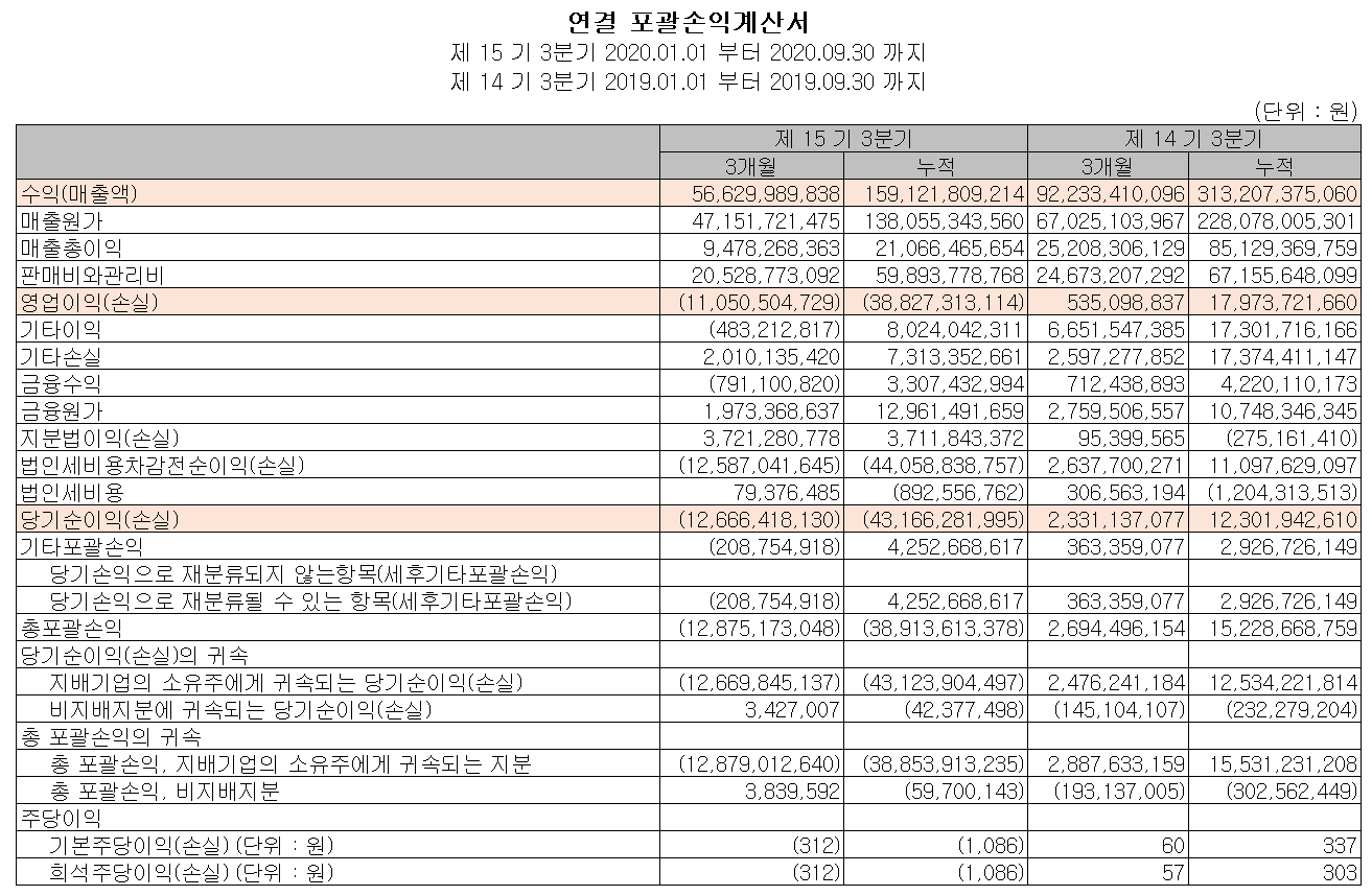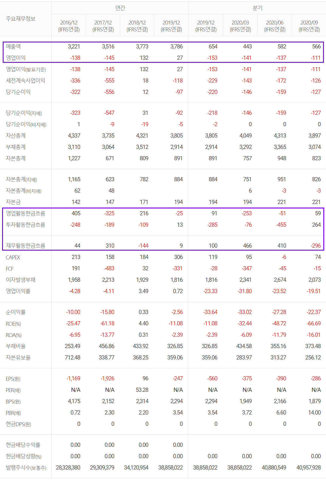 2019년 4분기부터 4개 분기 연속 적자가 지속되고 있고, 2020년 연말 결산도 적자로 마무리될 것 같습니다. 올해는 5G 본격화에 따른 당사의 그동안의 연구 개발에 대한 결실이 나타나길 바랍니다.