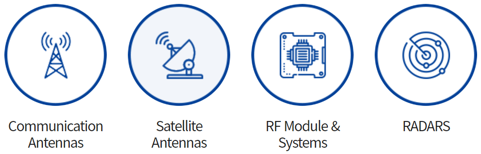 당사는 지난 2007년부터 방산 산업을 시작하여 군 통신용 안테나, 위성안테나, RF Module/RF system, Radar 등을 개발 및 공급하고 있습니다. 특히 군 지휘통제, 감시 정찰용, 위성통신, 레이더 장비 분야에서는 당사의 RF 원천 기술을 적용한 독자 설계와 공법으로 세계적 수준의 솔루션을 제공하고 있습니다.
