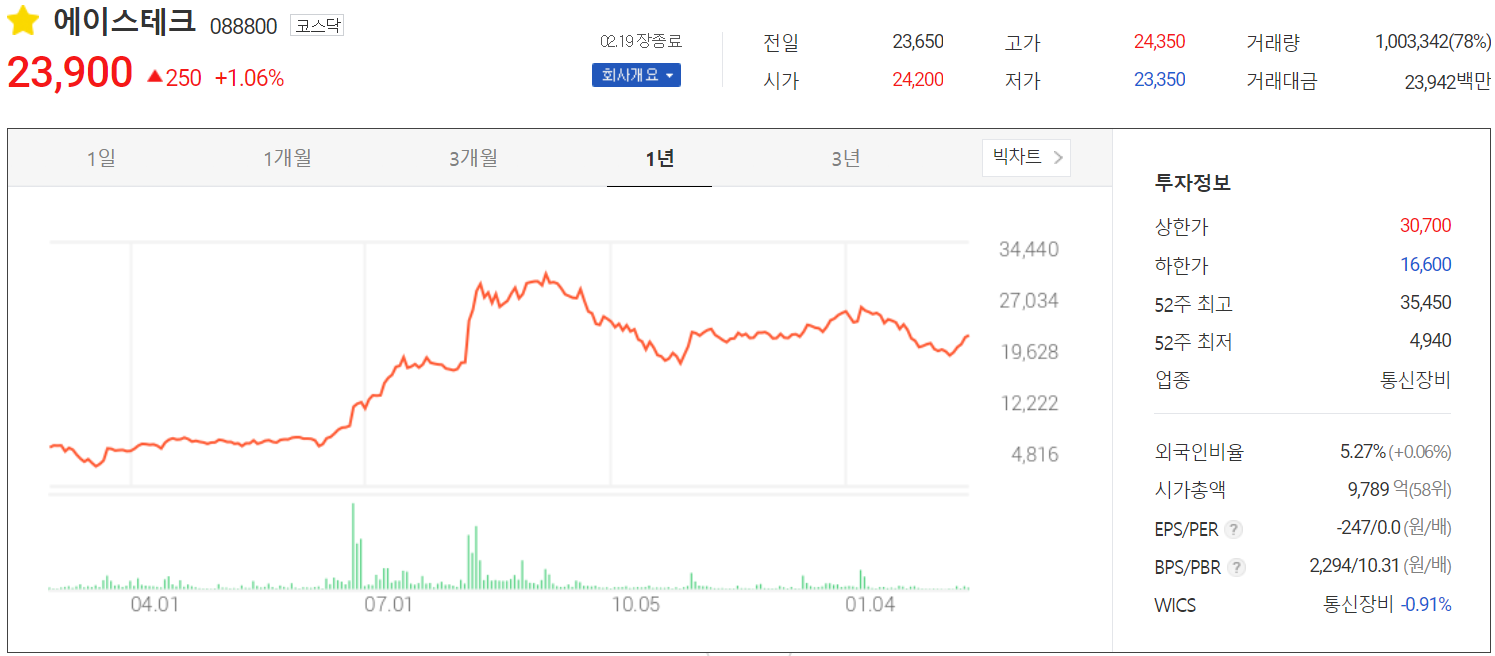 지난 2008년부터 10년 넘게 2000~6000 사이를 기록하던 당사의 주가는 2019년 4월 우리나라의 5G 상용화가 발표되면서 날개를 펴나 싶었지만, 기대보다는 실망을 안겨준 채 코로나19를 맞이 하였고 국내 이동통신사의 5G 투자 발표에 따라 지난 2020년 6월부터 주가가 고공행진을 시작하였습니다. 하지만 코로나19의 지속에 따른 전방 산업의 투자 지연과 당사의 고정비 부담에 따른 실적 부진으로 주가는 두 달 만에 반토막이 났습니다. 최근 코로나 백신의 개발 및 접종 개시에 따라 세계 주요 국가의 5G 투자 재개가 예상되면서 완만한 회복세를 보이고 있는 상황입니다.