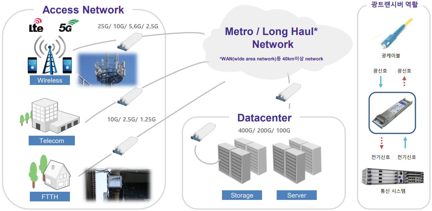 3. 5G 트랜시버 라인업 구축 완료(50 Gbps, 100 Gbps, 400 Gbps, Tunable SFP 등)