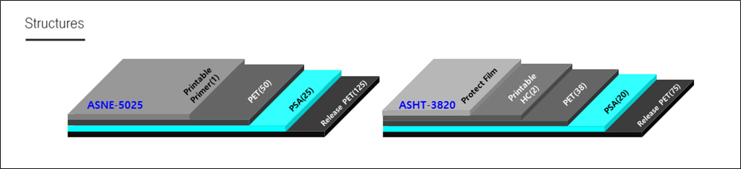 3D 및 4D Glass와 DECO 필름 Lamination 시 가이드 기능을 하는 필름으로 Touch Screen Panel, Flexible OLED에 대한 1처 3D 형상을 유지하고, Glass와 붙인 후 쉽게 박리되도록 UV 조사를 진행하여 제조됩니다.