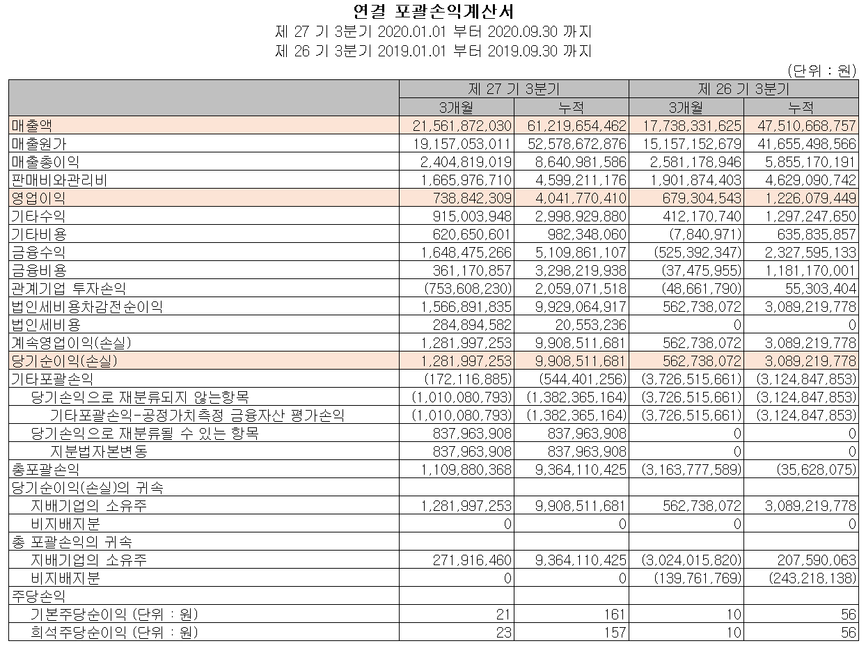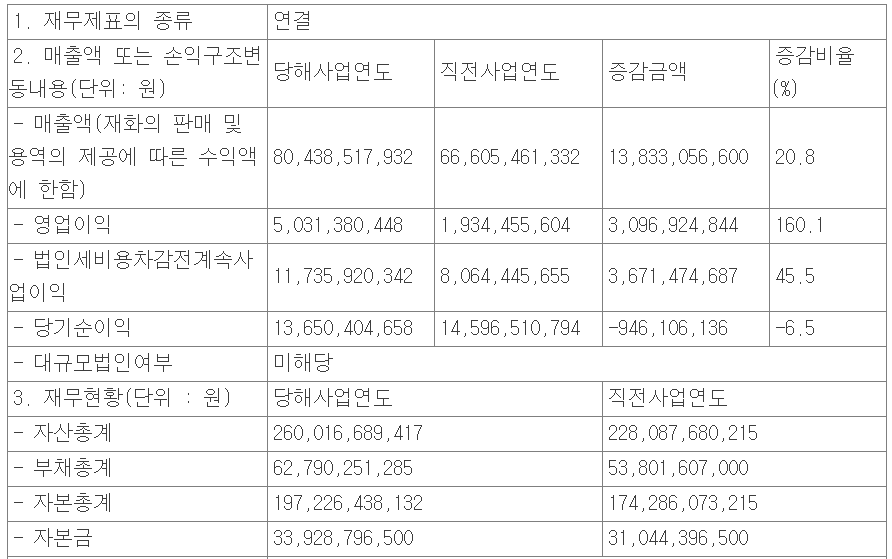 지난 2월 19일 당사는 2020년 연매출 또는 손익구조가 30% 이상 변동에 따른 공시를 하였습니다.