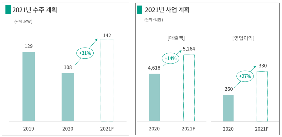 5. 2020년 대비 31% 수주 성장 예상 (2020년:108MW, 2021:142MW)