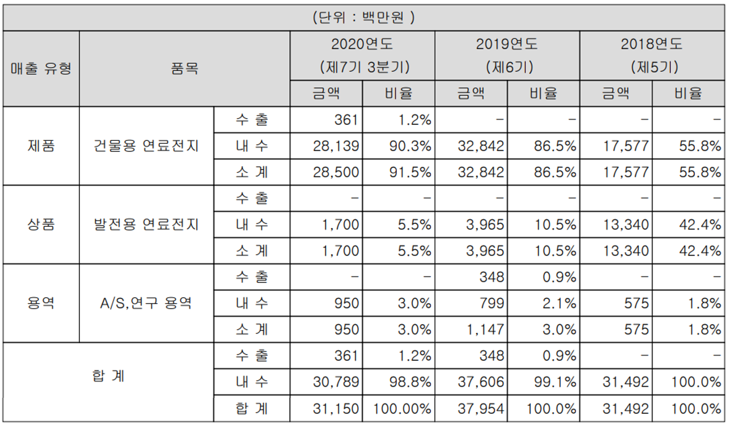 | 주요 품목 | 연료전지 |