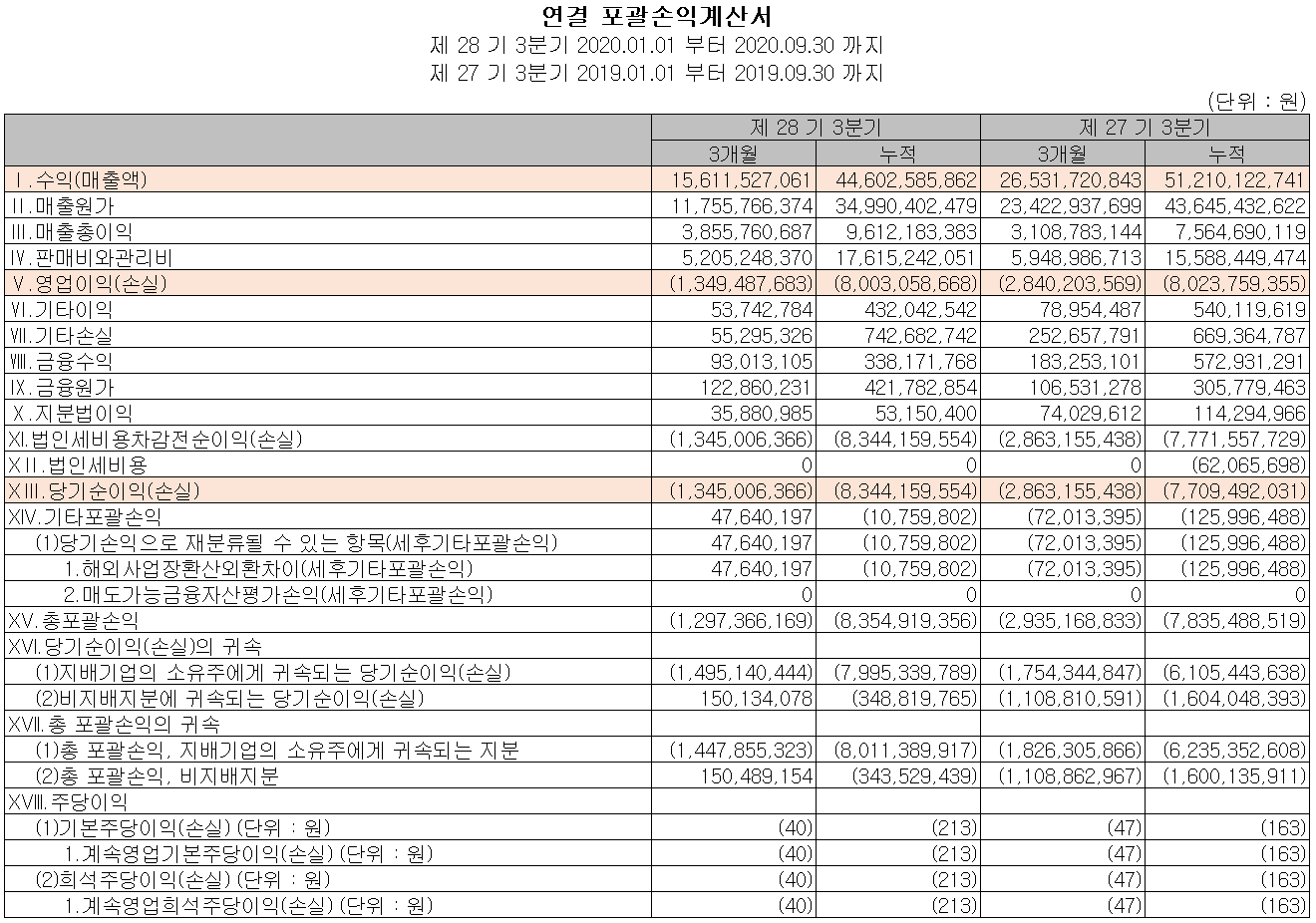 손익계산서 - 실적