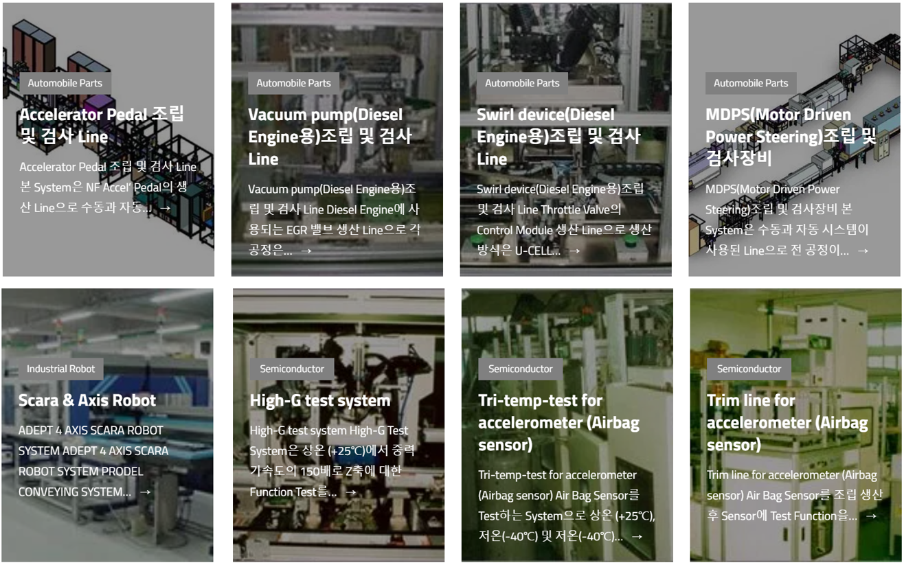 당사의 SAS 사업에서는 산업용 로봇 및 관련 자동화 기술을 응용하여 자동차 부품 생산 설비 및 반도체 부품 생산설비 등 다양한 산업분야의 자동화 설비를 제작하여 공급하고 있습니다.