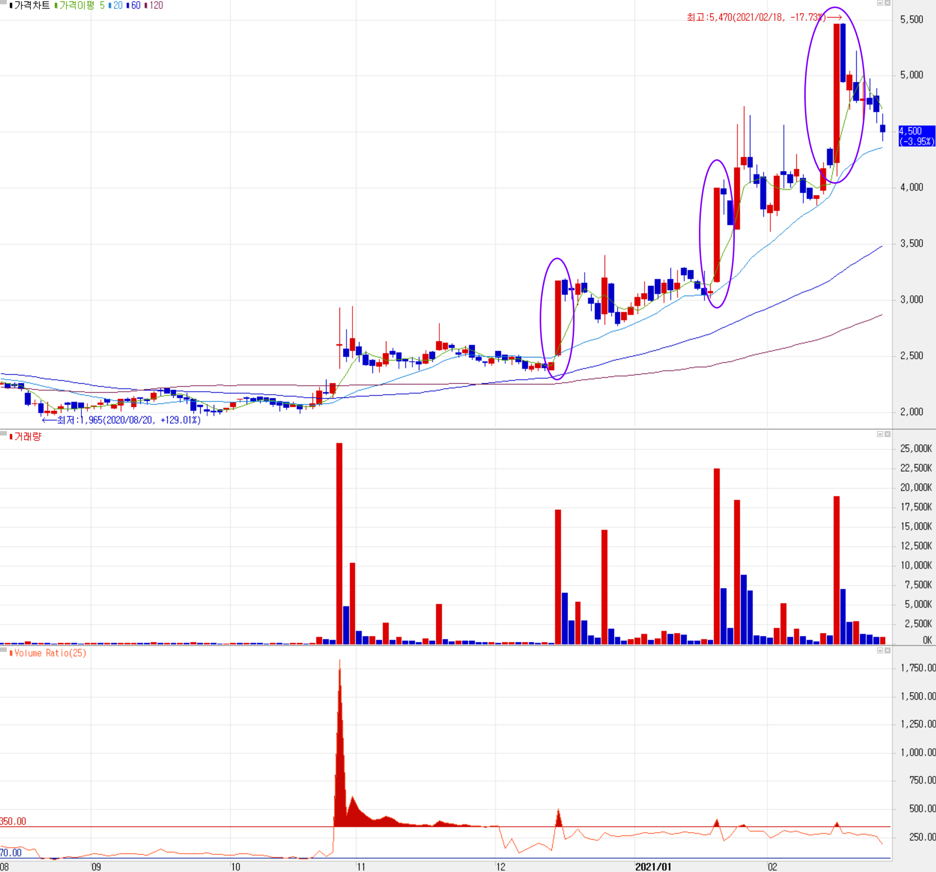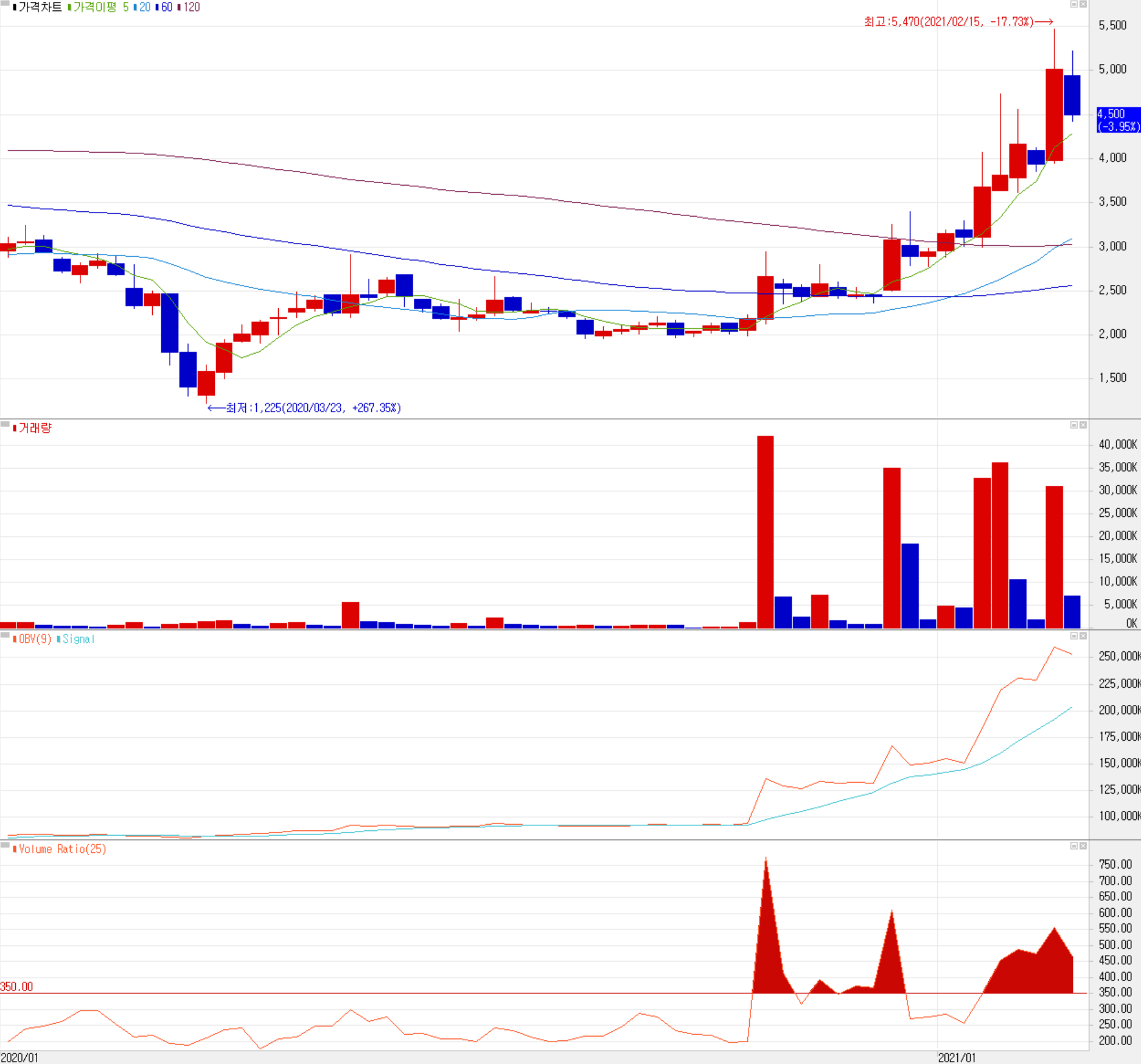 당사의 주가는 코로나19 팬데믹 이후 박스권 횡보를 하다가 캐릭터 상품의 테마성으로 한 두 차례 급등이 있었고, 2021년 들어서는 현대/기아차의 애플카 협력 소식 및 당사의 2D 스캐닝 라이다 솔루션의 출시 및 ISO 인증 등의 소식에 따라 크게 상승하였습니다. 수급에서는 기관의 움직임이 약하지만, 외국인의 비중이 큰 편입니다. 단기적으로는 시장의 조정과 함께 주가가 하락 추세에 있고, 4분기 잠정 실적이 나온 점과 거래량이 줄어드는 모습을 감안하면 4,100원 선을 지지하는지 지켜봐야겠습니다. 반등 시 1차 저항은 5,000원을 예상하고, 당사의 중장기 주가 방향은 2D/3D 스캐닝 라이다 센서 등 자율주행 핵심 기술 기반의 다양한 제품의 사업화에 있다고 할 수 있습니다. 또한 당사의 주력 사업인 물류 로봇과 청소 로봇 외에 차량용 자율주행 분야의 진출은 주가의 레벨을 바꿀 수 있는 모멘텀이 될 수 있으므로 관련 내용에 대한 모니터링이 필요하겠습니다. 2021년 그동안 연구개발한 10여 개의 다양한 제품의 출시에 따른 실적 개선에 주목해볼만 합니다.
