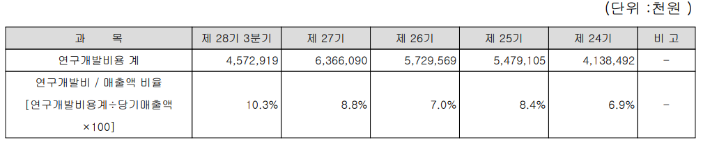 당사는 별도의 부설 연구소를 기반으로 지능형 로봇 및 라이다 솔루션 등에 관한 연구개발을 하고 있으며, 지난 2020년 3분기 기준 회사 전체 매출액의 10.3%를 연구개발비로 집행하였습니다.