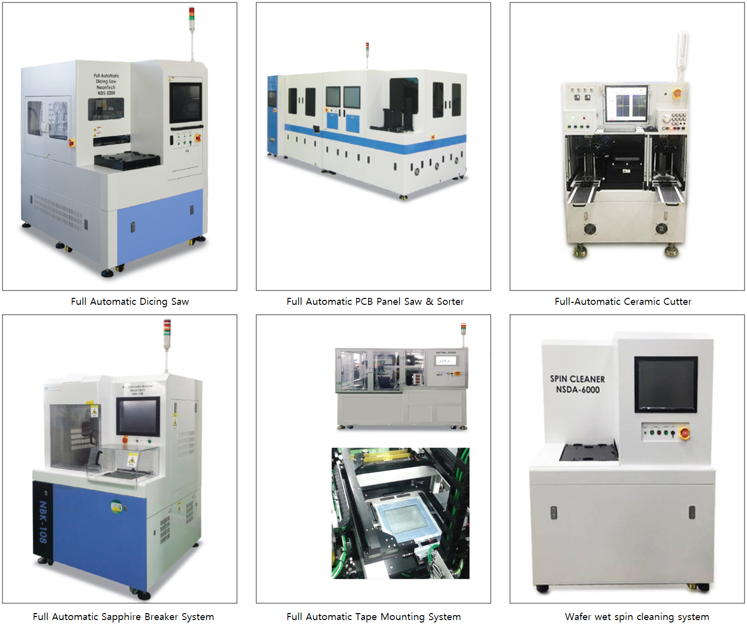 당사의 주요 제품 라인업에는 Dicing Saw, Saw & Sorter, MLCC cutter, Micro LED cutter 등 다양한 제품 군이 있습니다.