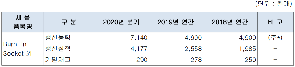 지난 2020년 3분기 말 기준 반도체 검사용 소켓 부문의 매출은 전체 매출의 89.8%를 차지하였고, 테스트 용역에 관한 매출은 7.6%의 비중을 보이고 있습니다.