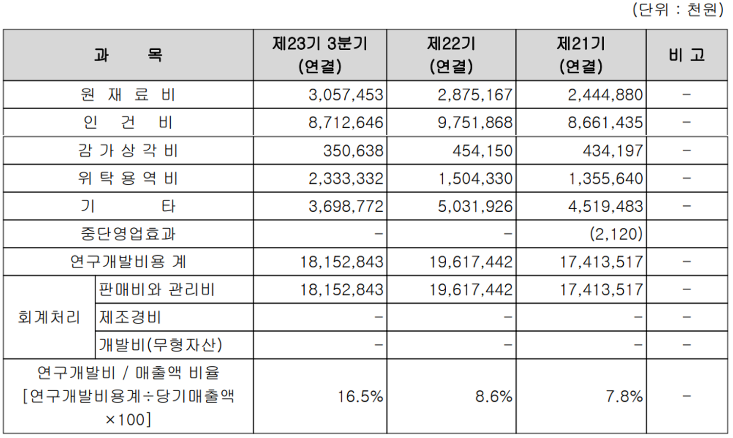 연구개발비용은 지난 2020년 매출 부진을 감안하면 당사 매출의 평균 10% 내외를 연구 개발 비용에 투자하는 것으로 보입니다.