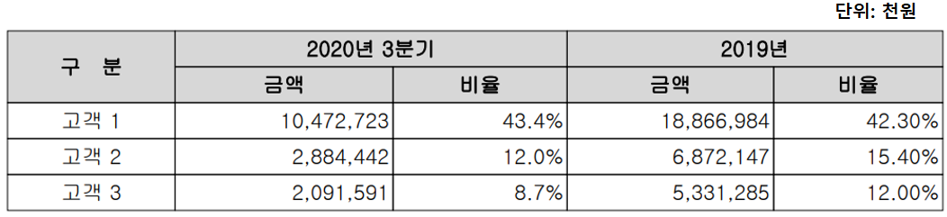 당사의 매출 10% 이상을 차지하는 외부 고객은 총 3개 사로, GM, 현대, 쌍용차이며 국내 자동차 5개사 및 해외 글로벌 OEM사에 제품을 공급하고 있습니다.
