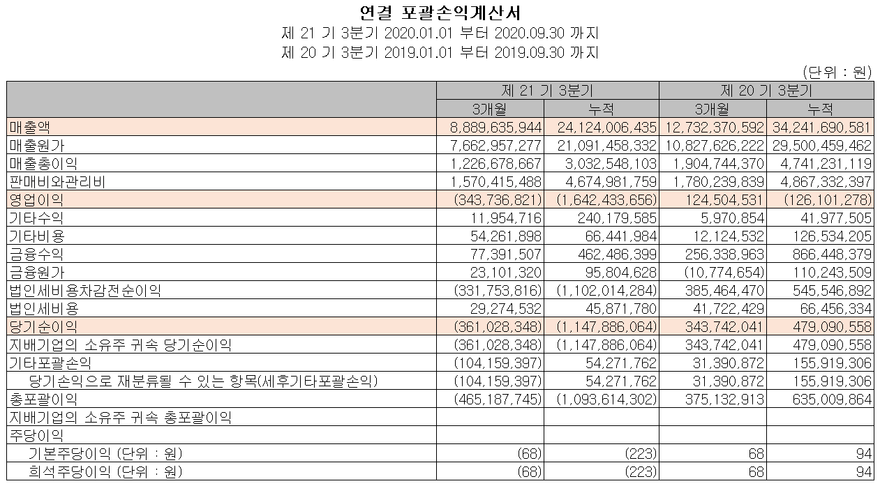 당사는 지난 2월 10일 손익구조 변동에 따른 잠정 실적을 공시했습니다. 2020년 매출액은 350억 원으로 전년 대비 21.4% 감소했고, 영업이익과 당기순이익은 흑자 전환했습니다. 코로나19의 영향으로 전방산업의 둔화에 따른 매출 감소가 있었으나, 내적 원가절감 및 정보보조금 수취 등으로 수익구조는 개선되었습니다.