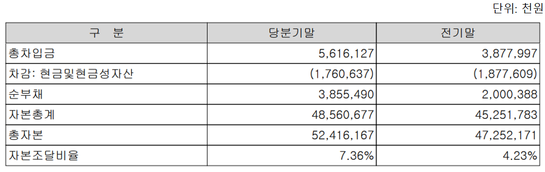 하지만 지난 5년간 영업이익이 감소 추세에 있으며, 이에 따른 당사의 제품 다변화 및 매출처 다변화 등의 노력에 따른 향후 결과가 주목됩니다. 부채비율은 20% 근처를 유지하고 있으며, 당분간 현금흐름에 대한 우려가 있을 수 있으나, 이익잉여금에 여유가 있고, 내연기관 차량용 정션박스에서 전기차, 수소차 등 새로운 제품의 매출 발생으로 인한 수익성 개선이 예상됩니다.