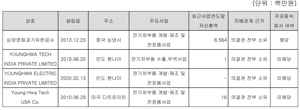 당사는 2020년 3분기 말 현재 중국, 인도 및 미국 현지에 4개의 종속회사를 보유하고 있습니다.