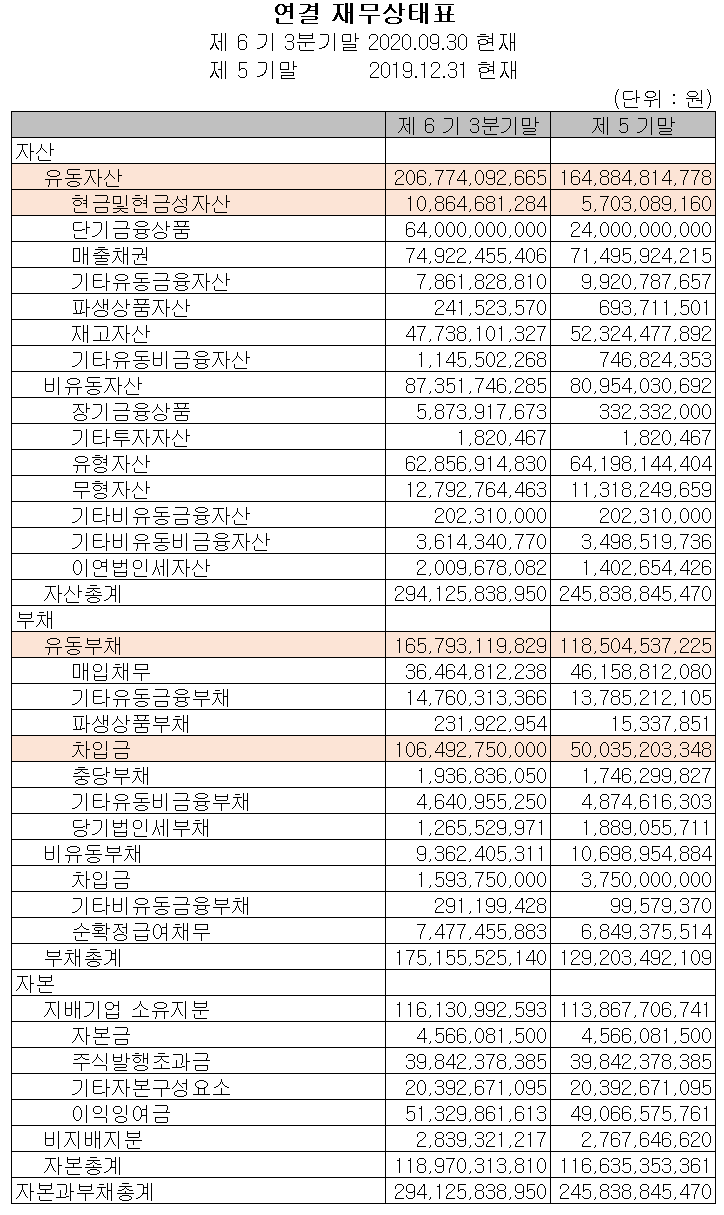 당사의 2020년 3분기에는 단기차입금에 560억 원 넘게 증가하면서 부채비율도 높아졌는데, 명확한 이유를 확인할 수가 없네요.