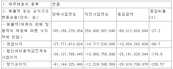 당사의 지난 2월 2일 잠정 실적 공시에 의하면, 매출액 1,852억 원으로 전년 대비 27.2% 감소했고, 영업이익은 -278억 원, 당기순이익 -411억 원으로 손실규모가 증가했습니다. 주력 사업인 모바일 부품사업 등에서 코로나19로 인한 전방산업의 수요 감소로 인해 매출이 줄었고, 2차전지 설비 투자 등에 따른 판관비 증가로 인해 수익률도 악화되었습니다.