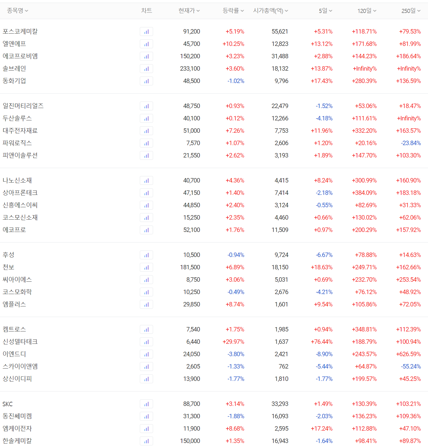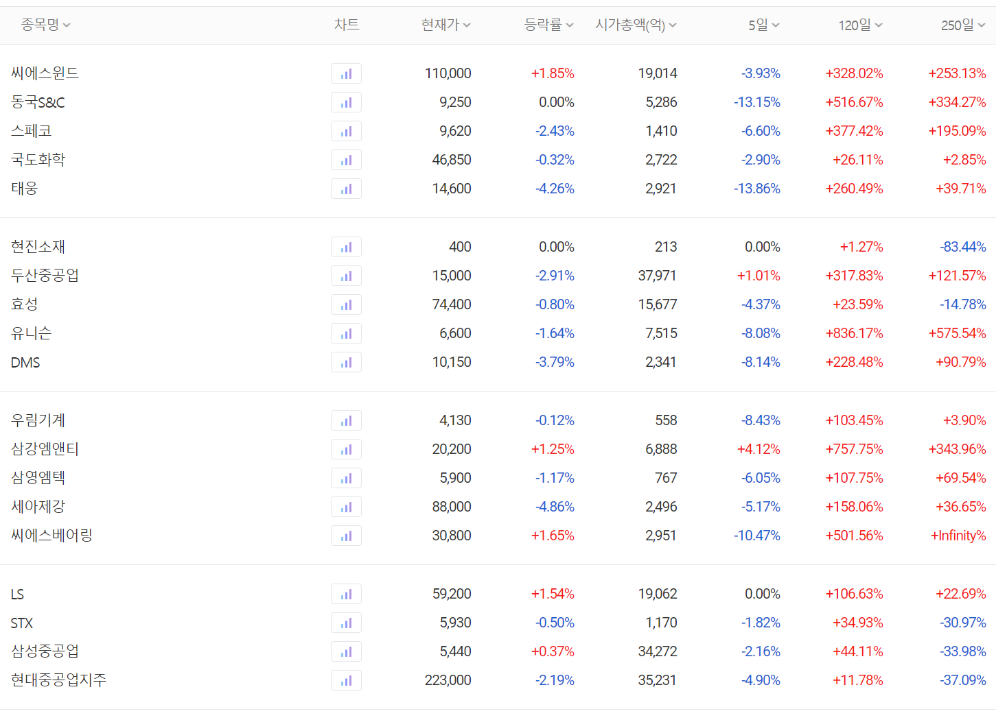 지난주 재생에너지(풍력발전) 관련 업종은 지난 6개월 간 급상승한 탓인지 쉬어가는 모습입니다.