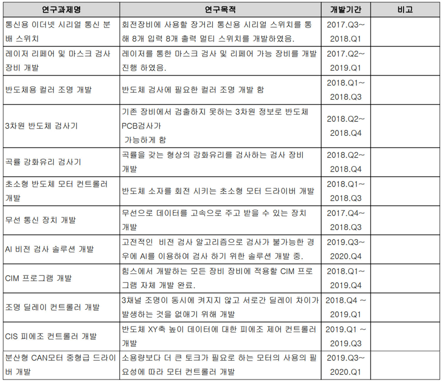 | 2011 | 봉지공정용 AOI(광학 검사 장비 |
