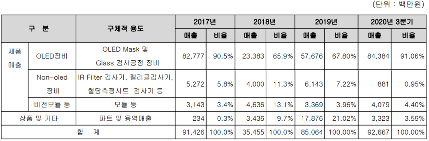 | 주요 품목 | OLED 제조 공정용 장비 및 부품 |