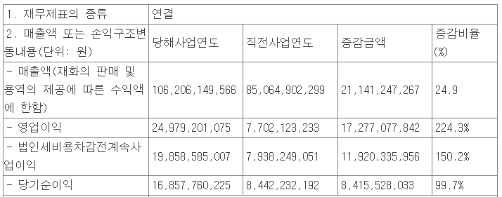 당사가 지난 2월 8일 공시한 잠정 실적에 의하면, 2020년 매출액은 1,062억 원으로 전년 대비 24.9% 증가했고, 영업이익은 250억 원으로 224.3%, 당기순이익은 169억 원으로 99.7% 증가하는 등 사상 최고 실적을 달성했습니다. 매출 추이에서 나타난 것처럼 주요 실적 개선은 수출의 증가에 따른 것으로 알려졌습니다. 주 고객사인 삼성디스플레이의 투자가 본격화되면서 2021년이 더 기대되는 기업입니다.