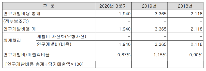 당사의 연구 개발에 사용되는 비용은 전체 매출액 기준 1% 내외를 차지하고 있습니다.