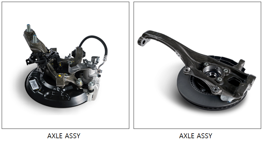 휠의 회전 및 차량을 지지하는 역할을 하는 차축으로, 자동차 샤시에 있어 중추적인 역할을 하는 부품입니다.