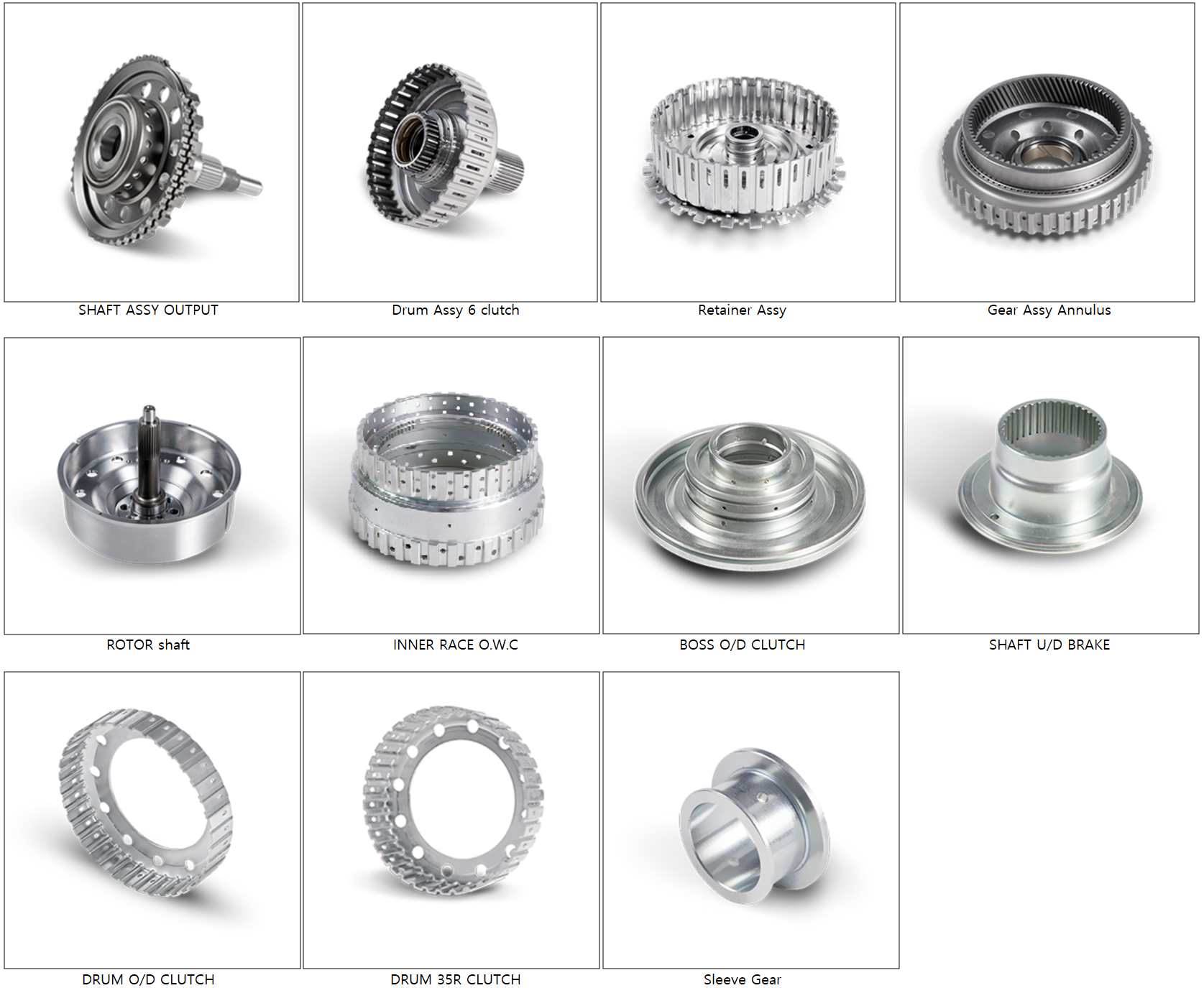 자동차의 기어(Gear), 클러치(Clutch), 추진축(Shaft) 및 동력 전달용 드럼 시스템 등 구동 관련 부분에 적용되는 부품입니다