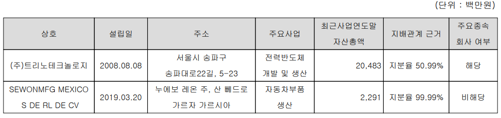 2019.08 | 멕시코 법인 설립, 종속회사 편입 |