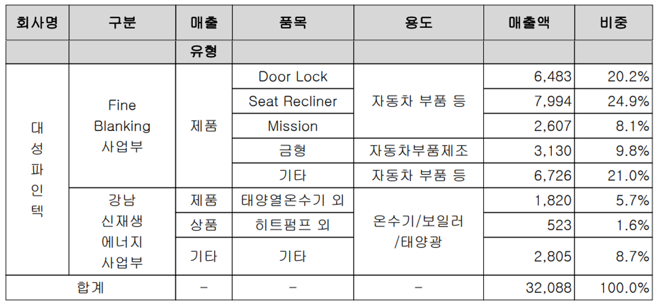 당사의 주요 사업부문에는 FINE BLANKING 사업부와 신재생에너지 사업부문이 있습니다.