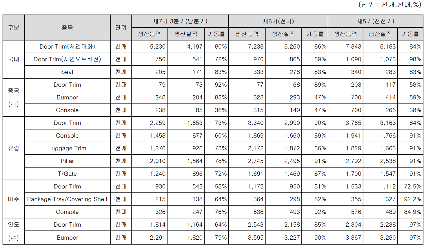 | 주요 품목 | 자동차 도어 트림 등 내외장재 |