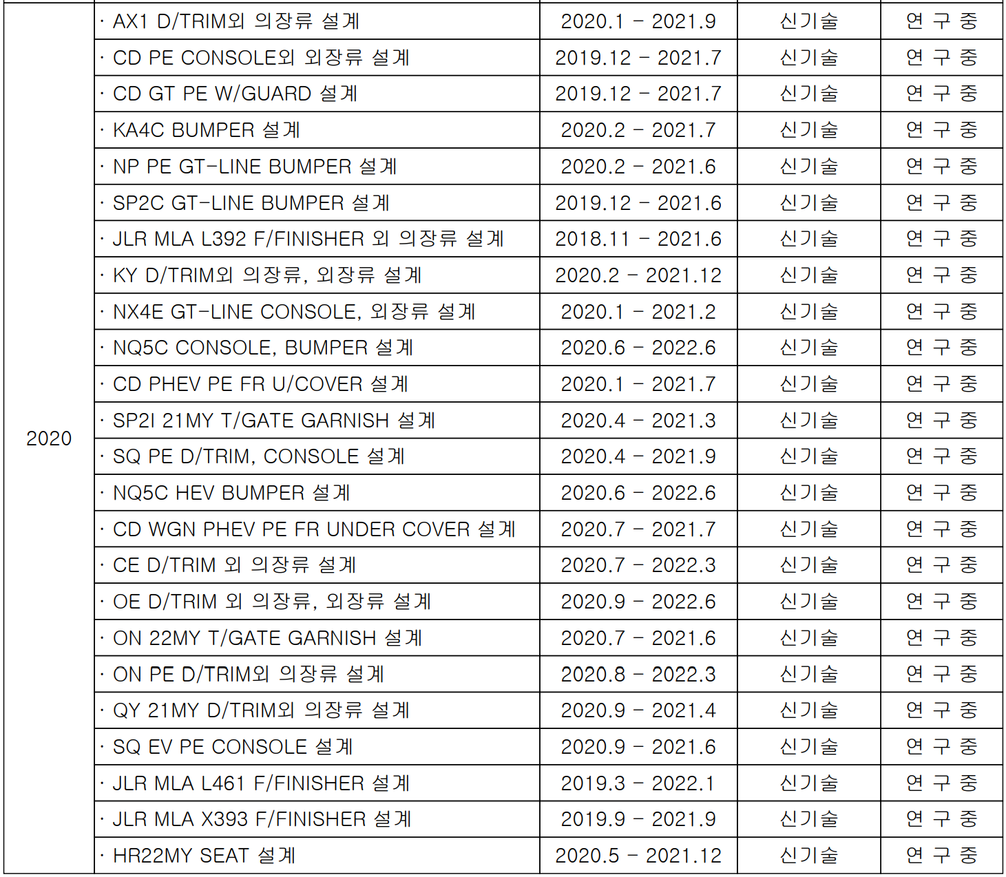 | 1991.10 | 일본 河西工業(주) 기술도입계약(승용차 TRIM 성형공법) |