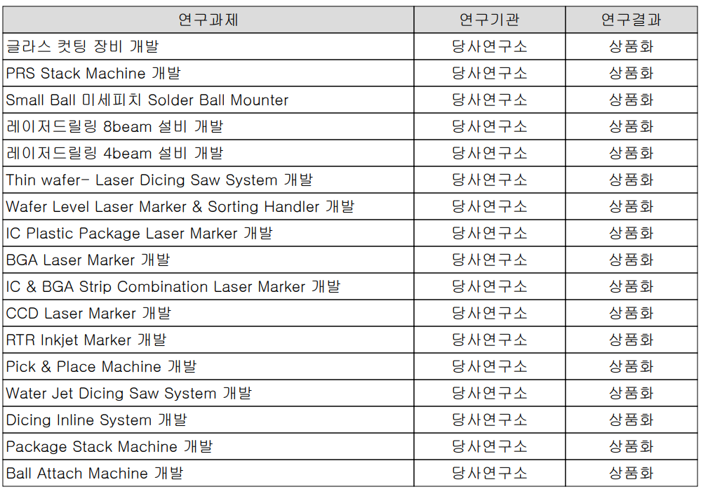 | 2014 | 반도체 Package Laser Cut 장비 개발 |