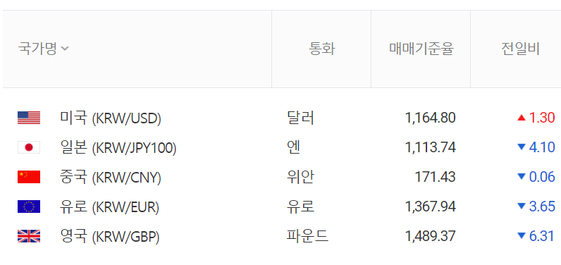 오늘 환율은 현재 원달러 환율의 경우 1.30원 반등하면서 1,164.80원에 거래되고 있습니다.