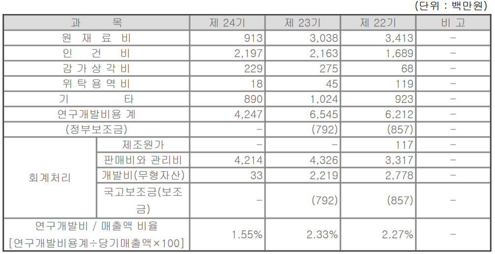 당사는 디스플레이 검사 장비 및 부품과 소재에 대한 연구뿐만 아니라 2차전지 등 신규 사업 분야에 대한 연구 개발을 지속하고 있으며, 최근 3년간 전체 매출액의 약 2%를 연구개발에 투자하고 있습니다.