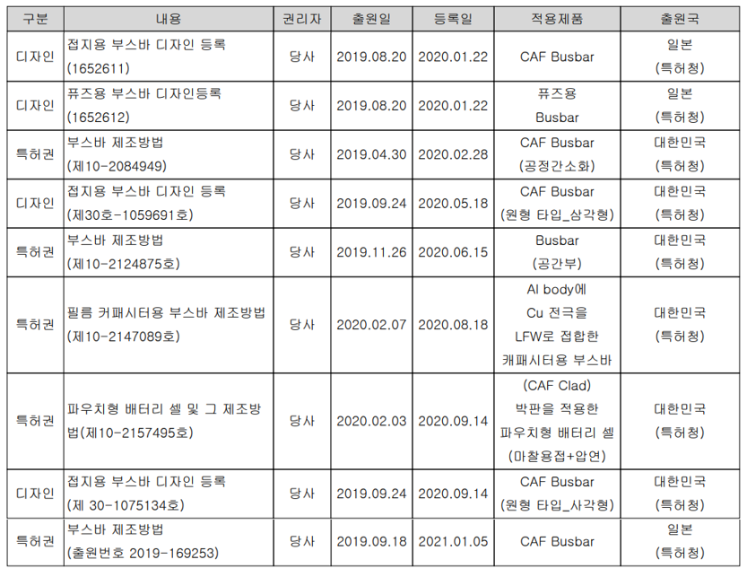 2. 고객사 설계 변경에 따른 음극 단자(부스바)에 대한 신기술 관련 특허 3건 등록 등 향후 매출 회복 예상