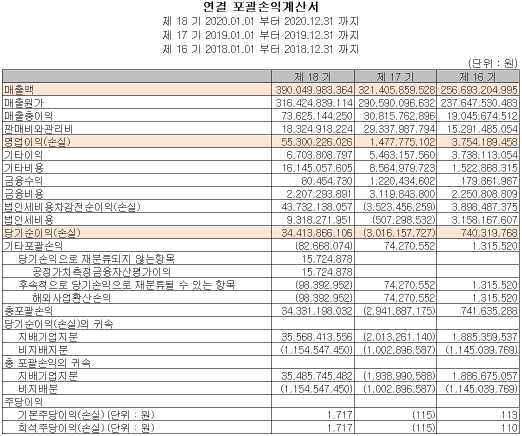 당사는 2020년 코로나19 상황에도 불구하고 2차전지, 디스플레이, 소재 등 다양한 분야에서 다수의 고객으로부터 안정적인 매출 실적을 올렸습니다. 2020년 매출액은 3,900억 원으로 전년 대비 21.36% 증가했고, 영업이익은 553억 원으로 3,644%, 당기순이익은 344억 원을 기록하면서 흑자 전환했습니다. 당사 및 종속회사의 원가 절감 노력과 중국 현지법인인 섬서인과기계설비(유)의 흑자 달성 등으로 수익성이 크게 개선되었습니다.