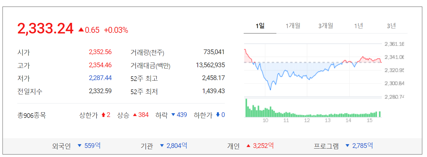 오늘 코스피 시장은 외국인과 기관이 각각 577억 원, 2804억 원 순매도했고, 개인은 3252억원 어치를 사들이면서 전일 대비 0.65포인트(0.03%) 오른 2,333.24로 마감했습니다. 초반에는 최근 불거진 유럽 주요국의 코로나 재확산에 대한 우려감과 미국 내 정치적 불확실성으로 인한 추가 경기 부양책이 지연될 수 있다는 실망감으로 장중 한 때 2300선 이하로 하락했으나, 오후 들어 외국인 매도세가 진정되면서 강보합으로 마무리되었습니다. 개인은 삼성전자, 삼성바이오로직스, 현대차등을 순매수했고 일론 머스크의 배터리 공급에 대한 기대감에 2차전지 관련 종목들도 매수에 나섰습니다. 반면 외국인은 SK하이닉스 및 Naver, 카카오 등 그동안 조정을 받아온 언택 관련주들을 매집했습니다.