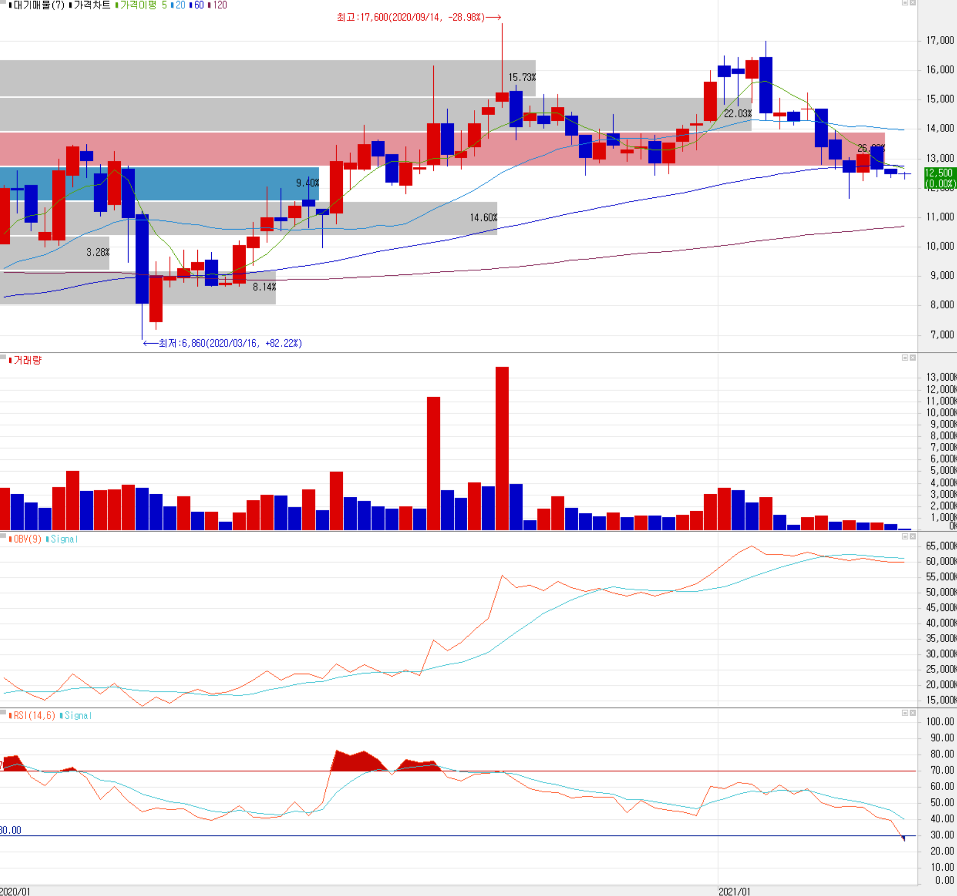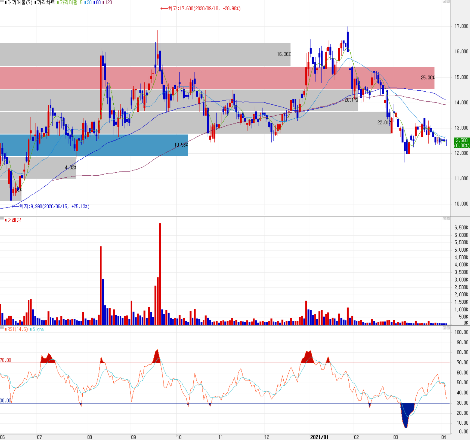 당사의 주가는 지난해 3월 코로나19 팬데믹으로 인한 급락 이후 상승하면서 9월 중순 최고 점인 17,600원을 터치했습니다. 이후 시장 수급의 변동으로 일부 조정을 받다가 연말을 기점으로 다시 한번 전고점 돌파를 시도했습니다. 2월 들어서면서 시장 수급의 변동성과 함께 특히 2차전지 장비 주 위주의 조정으로 주가는 현재 12,500원을 기록하고 있습니다. 최근 5 거래일 째 주가의 변동이 거의 없는 상황으로, 최근 수급에서는 외국인과 기관이 매수 우위를 보이고 있습니다. 컨센서스 및 기술적 소견을 적용하여 개인적인 목표 주가는 17,500원으로 설정하였으며, 15,400원 부근에서 저항이 예상되고 하락 시 11,800 선에서 1차 지지할 것으로 예상합니다.